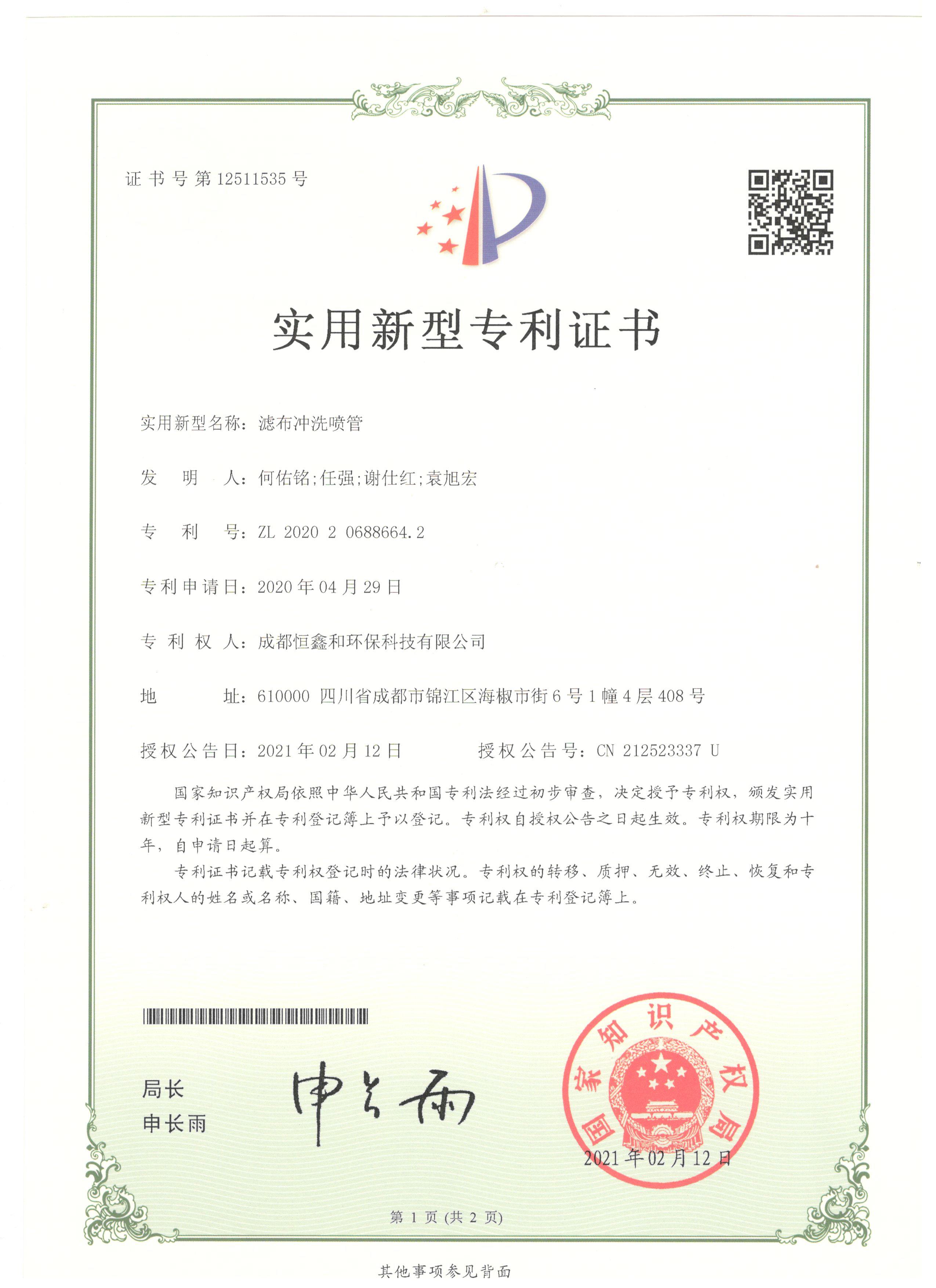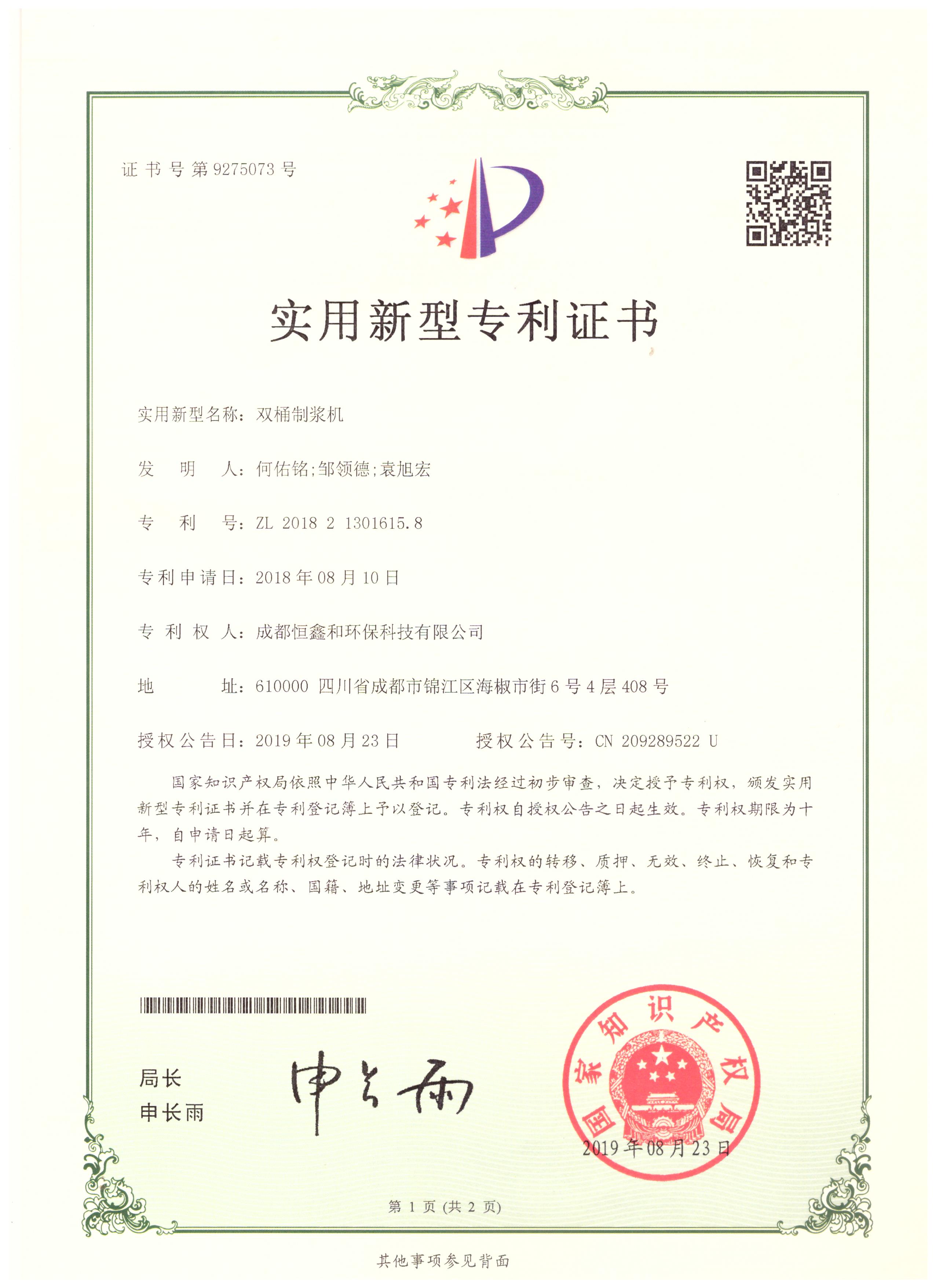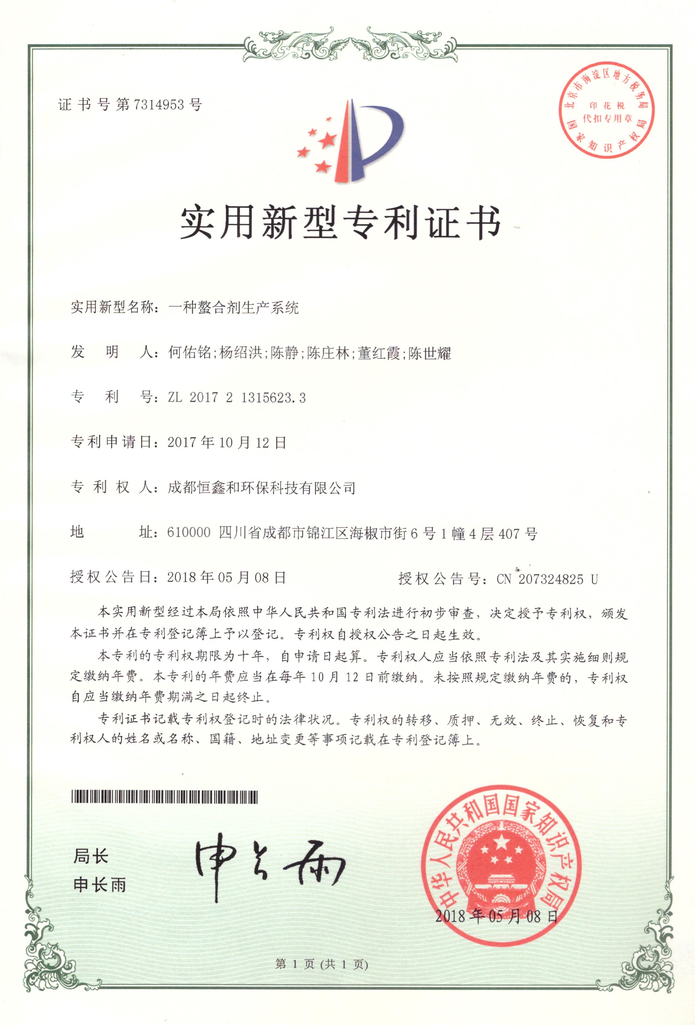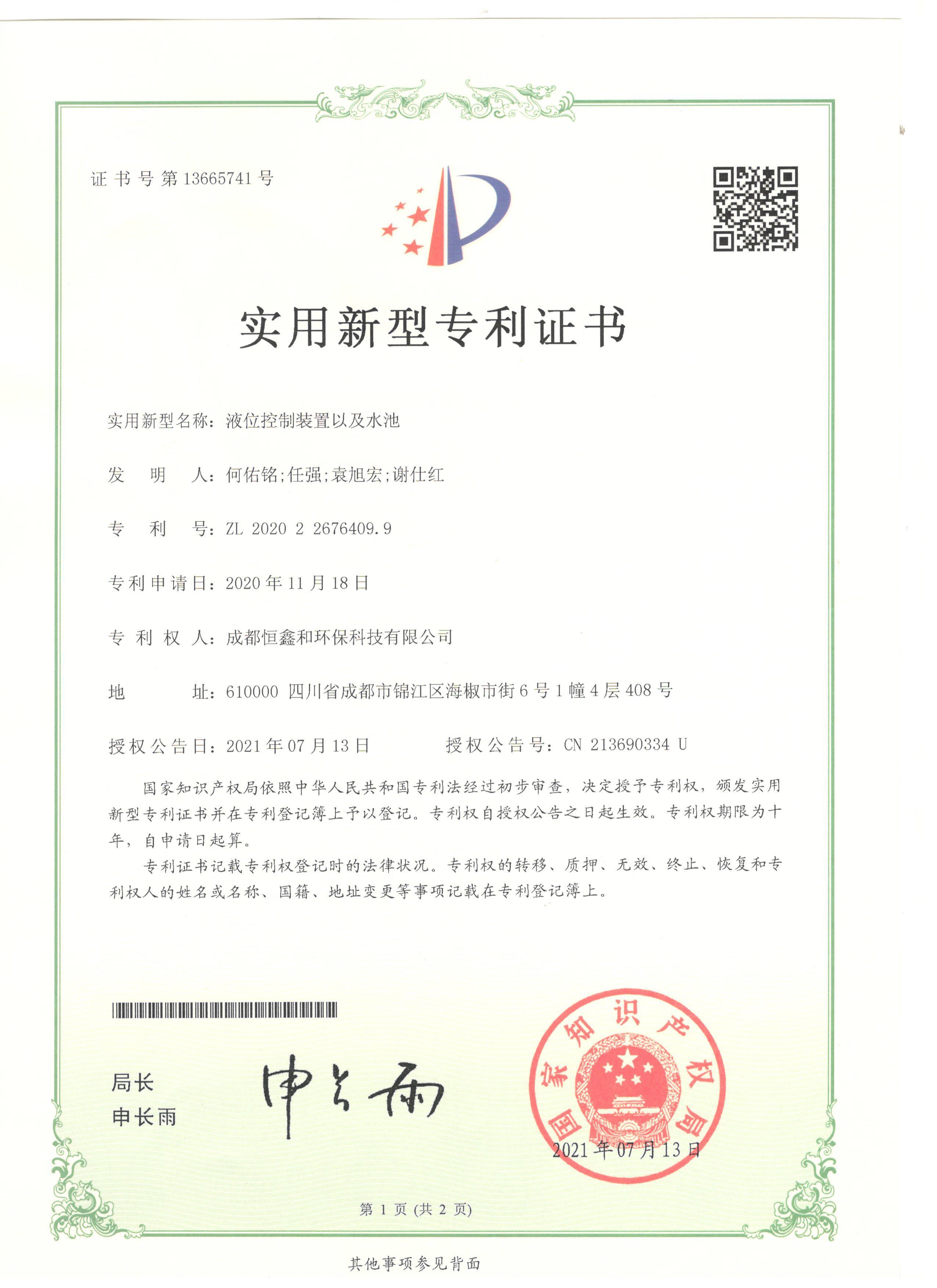 Patent certificate