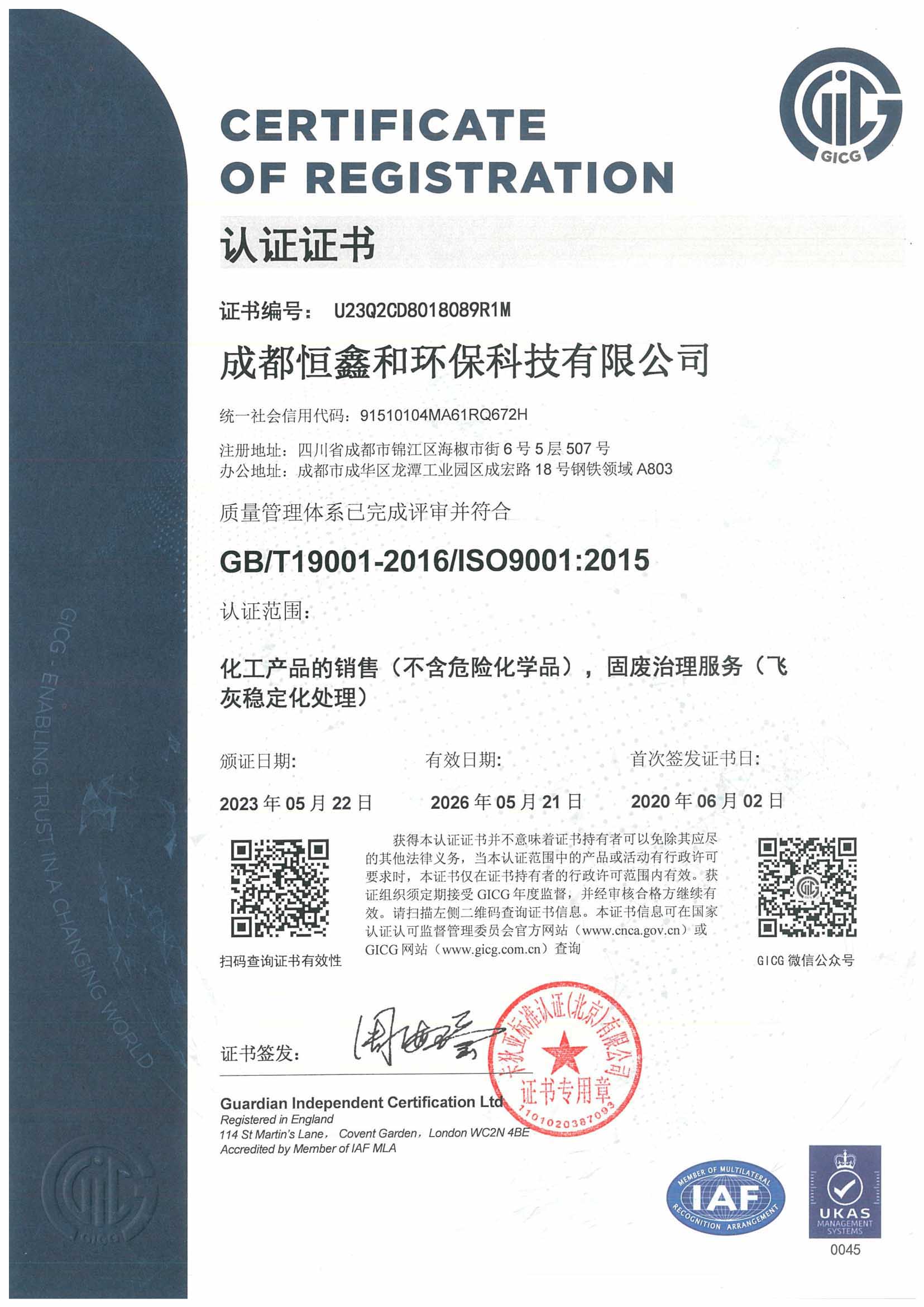 Qualification certificate
